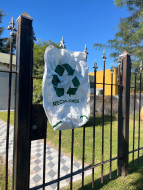 Durante la recorrida, se realizó la entrega de ecocestos e imanes informativos a vecinos y vecinas en las calles 25 de Mayo, Antártida Argentina y Güemes, en el tramo comprendido entre Alem y Pancho Costa.
