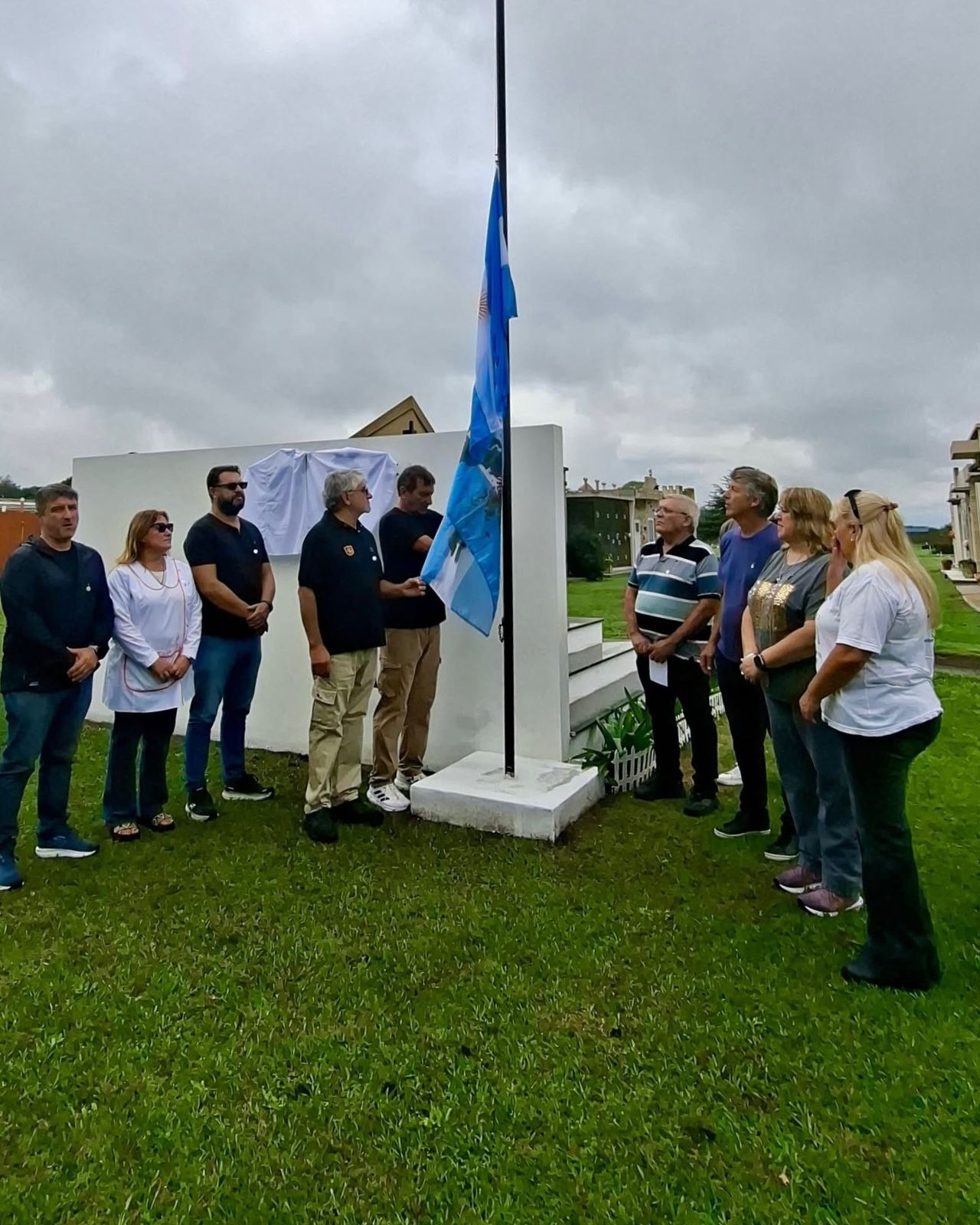 Asimismo, se realizó una ofrenda floral y el descubrimiento de la silueta de las Islas Malvinas en el mausoleo de Alberto Aguilera, ubicado en el cementerio local, reafirmando el compromiso de mantener viva la memoria.