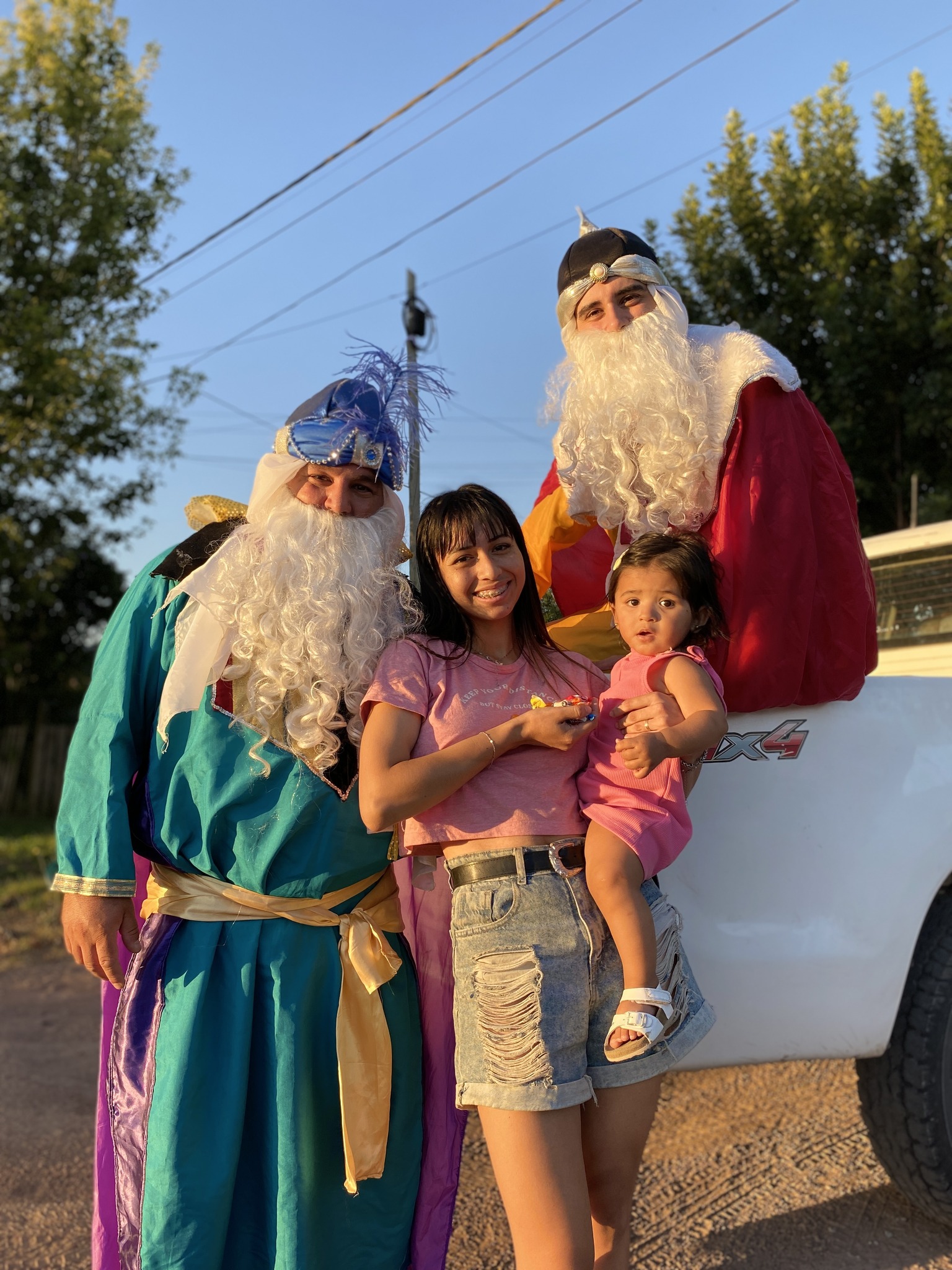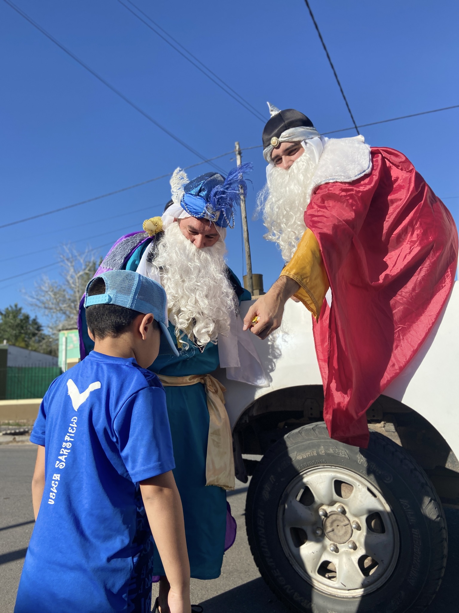 Hoy lunes 5 de enero, los Reyes Magos Melchor, Gaspar y Baltasar recorrieron la localidad de Carlos Beguerie y distintos sectores de la ciudad de Roque Pérez, compartiendo momentos de alegría con grandes y chicos.