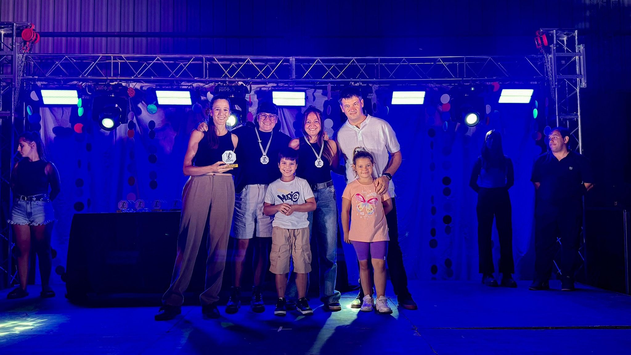 La celebración se realizó en el polideportivo del Parque del Bicentenario, donde se vivió una noche especial dedicada al deporte y a quienes, con esfuerzo y dedicación, representan a Roque Pérez en distintas disciplinas.